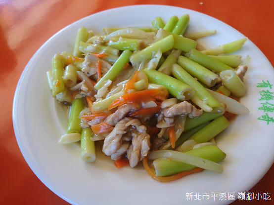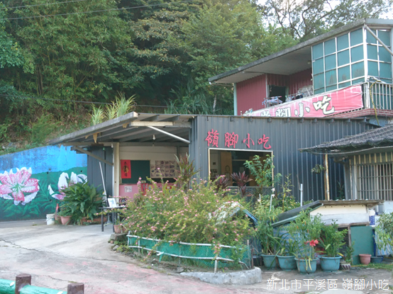 流貫嶺腳的尪仔上天溪對岸,「嶺腳小吃」是另一家別具特色的餐館。8月3日,新北市終於開放餐廳內用,走進餐館前,老闆為我們一行人測量額溫,「今天天氣很熱,所以每個人都發燒,額溫超過攝氏37度。」他笑了一下,便邀請我們入座;此時,店門口正好列車駛過,一陣轟鳴聲中,我看見車廂內乘客屈指可數,每個人幾乎各自包下一節車廂。