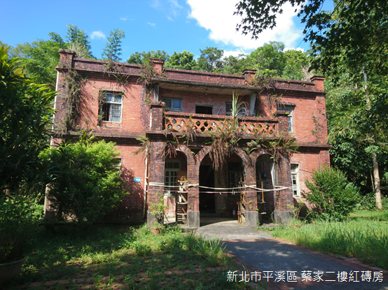 蔡家二樓紅磚房並沒有固定的名稱,也有人稱之為「蔡家古厝」或者「蔡家洋樓」,大約興建於日據昭和14年(1939)左右,屋主蔡全先生在光復後取得臺陽鑛業株式會社在嶺腳的礦業開採權,改名永昌煤礦,紅磚房因此曾經作為永昌煤礦運作生產時的事務所,民國48年(1959)礦權轉移並更名「英隆煤礦」,直到民國70年(1981)收坑。縱使榮華富貴已成過往,陽光下的胭脂磚依舊散發紅潤光澤,而古雅建築更深受影劇青睞,父親說,民國66年(1977)上映的「煙水寒」,紅磚房即為劇中重要場景之一。