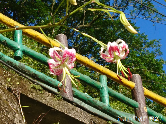 豔紅鹿子百合(Lilium speciousm var. gloriosoides)是鹿子百合的變種,目前僅分佈於新北市平溪區、石碇區,以及深坑區等淺山地帶,性喜在岩石充斥、顯露,同時面向陽光的山坡地生長,因此享有「峭壁上的精靈」的美譽。由於花朵點綴好似梅花鹿的斑點,豔麗的外型招致人們過度摘採而瀕臨滅絕,最近幾年,嶺腳復育有成,除了車站附近,隱藏在深山的靈巖寺一樣能欣賞到豔紅的花朵。