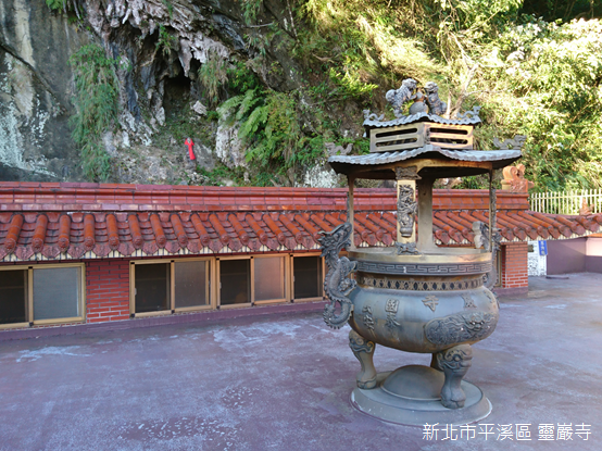 靈巖寺於民國36年(1947)由蔡泉之子蔡石勇所建,主祀觀世音菩薩,寺廟背後的山壁底下,大約在民國34年(1945)間,一位農民採集野菜時在此發現一個鐘乳石,外觀就像是一尊觀音,於是加以供奉。民國85年(1996),時任管理員蔡德源將靈巖寺重新整修成五層樓建築,並且鋪設產業道路和環山步道,讓山中的「滴水觀音」更容易親近,滴水觀音不僅是昔日無數礦工心靈的寄託,更是嶺腳所有居民心中的信仰。