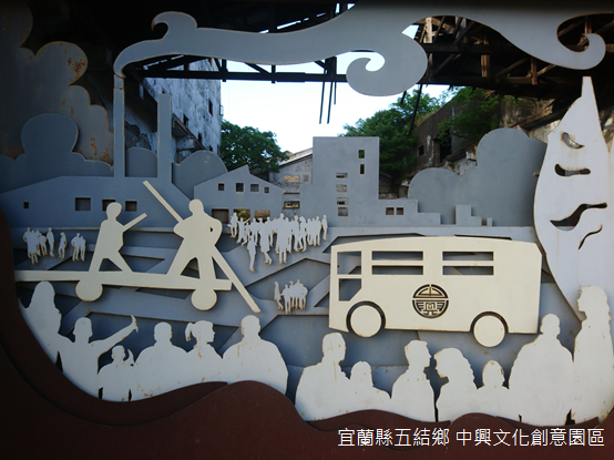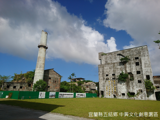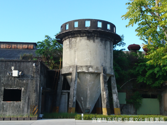 「火車行到二結埔,二支煙筒平大箍。」矗立於蘭陽平原之上,座落在蘭陽溪右岸,羅東鎮北郊,中興文化創意園區(以下簡稱「中興文創園區」)裡的大煙囪高聳且醒目,中里車站和宜蘭線鐵路緊鄰園區東側。以往行駛蒸汽火車的年代,每當列車行經中里車站,大煙囪和火車頭的煙囪兩相呼應,灰白的煙霧是平原上鼎盛一時的榮景。