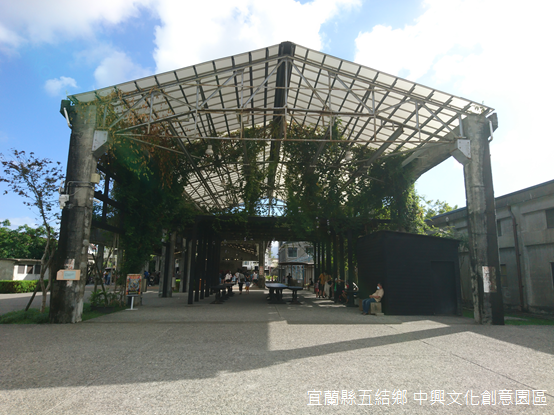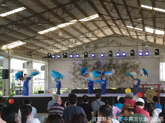 走出屋外,服務中心旁的「光合屋」原本是儲放木料的簡易倉庫,背後的「戲棚下」原先則是放置儲存進口乾紙漿的漿料倉庫,如今都成為戶外展演空間,舞台上,蘭陽舞蹈團舊瓶新作《燈籠鬼找燈》歡樂逗趣,舞台下觀眾看得津津有味。