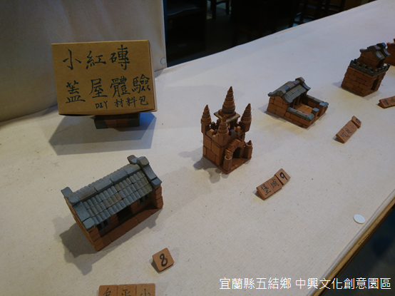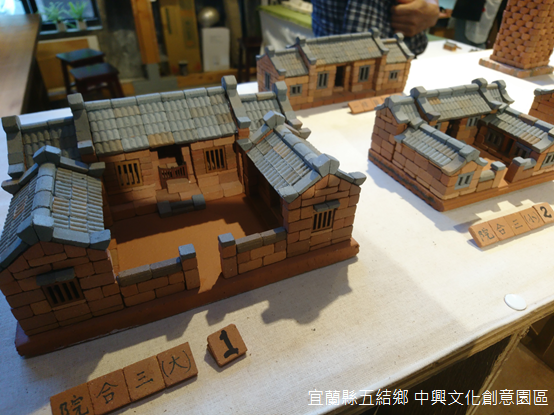 「一開始『起家厝』小小的,屋外還搭建了簡陋的廚房,後來屋主有錢了,蓋起三合院,廚房也不用在外頭淋雨了。」對於攤位上的作品,他總是津津樂道。袖珍磚胚是磚窯廠轉型的嘗試,樂高似地小紅磚,組合成三合院、寺廟,或者形形色色的民居,不但讓沒落的磚窯廠開拓出一線生機,也重現昔日臺灣農村淳樸的風景。