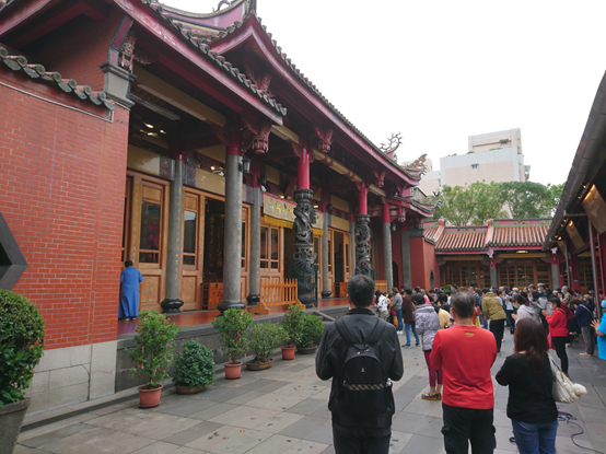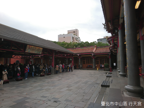 隔天早晨,窗外街道不再潮濕,天空中的烏雲緩緩消褪,早餐之後前往行天宮祈福的行程於是準時出發。松江路上行人寥寥無幾,就是連為了參拜關聖帝君所準備的「不老客家傳統麻糬」也尚未開始營業;走到行天宮入口,長長的排隊人龍等候掃描「1922簡訊實聯QR Code」,隨後測量額溫,通過高懸「嚴嚴」的虎門。