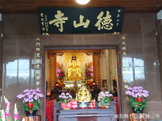大年初一,天氣陰雨,距離竹山市區不遠的德山寺裡,善男信女依舊絡繹不絕。建於清康熙59年(1720),德山寺主祀觀世音菩薩,曾經因為水患而多次遷廟,道光13年(1833)在鄉紳陳朝祥的倡議下重建於今天德山山麓的位址,日據昭和17年(1945)受到日本皇民化運動影響,設立淨土宗德山教會所,更名淨土宗德山岩寺,直到民國92年(2003)才恢復「德山寺」本名。值得一提的是,「德山」的閩南話與「竹山」相同,究竟是巧合,或者正是寺廟命名的來由?
