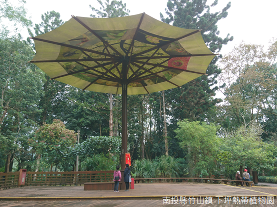 大學時參加「森林生物多樣性概論」課程,跟著實驗林導覽的腳步探索「下坪熱帶植物園」,轉眼間竟然已經是五年前的事情。通過園區大門,遊客中心前的木桌椅依舊,植物園內的林相應該也沒有太大變化;只不過,除了少數外型特殊的樹種,如果沒有解說牌的指引,仍然無法立刻辨別步道兩旁植物的種類,不一會兒,全臺最大的木製巨傘──臺大生態傘映入眼簾,這裡正是和「森多概」課程同學們第一次大合照的地方。