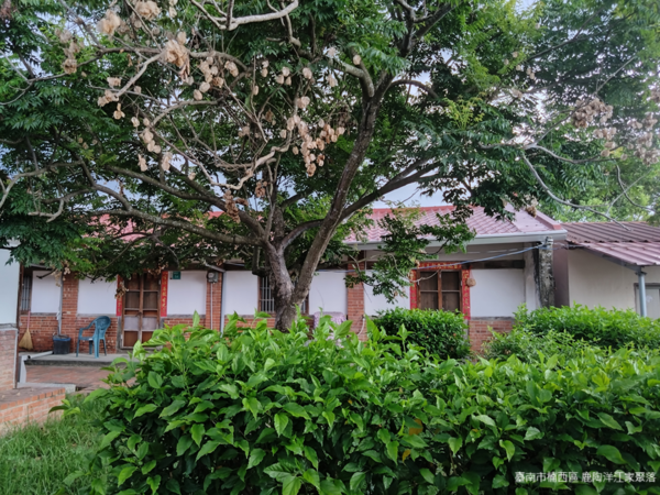 從宗祠、半月池、挑水路到古井,不時令人感覺好像走進明代詩人歸有光的作品〈項脊軒志〉裡的情境;在此同時,正逢臺南少有的雨天,水溶溶的雨景尤其難得,有時飄灑雨絲,有時陽光普照。古井附近的田園矗立一棵繁盛的百年紅肉檨,是日據昭和六年(1931)間,鹿陶洋江家聚落十八世江萬全──時任首屆祭祀公業主事兼鹿陶洋部落保正出訪日本特地攜帶回臺所種植。