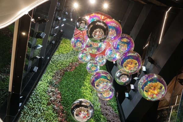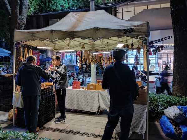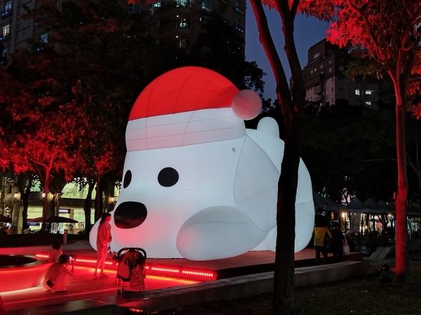 縱使當下已經進入12月上旬,白天氣溫仍然高達攝氏30度,入夜以後的街道更感受不到任何一絲寒意;儘管如此,草悟道沿線的燈光和耶誕裝飾,同樣帶給人們溫馨的感受。為了迎接即將到來的耶誕節,「聖誕紅通通」(PARKLANE CHRISTMAS)節慶活動在草悟道盛大舉辦,特別邀請日本插畫家Kazumasa Matsui創作一隻放大版的BIG DOG與牠的紅色大碗,BIG DOG身長近八公尺,狗碗直徑約四公尺,人們不但可以走到狗碗裡和BIG DOG合影,狗碗也是表演舞臺,傳達溫馨與歡樂;此外,懸掛「勤美誠品綠園道」中庭的「聖誕帽泡泡」是一串七彩斑斕的球體裝飾,人們可以在下方或坐或躺,沉浸在洋溢童趣與幻想的氣氛當中。