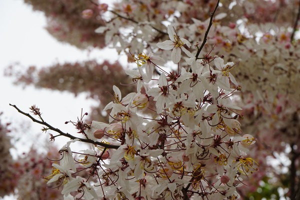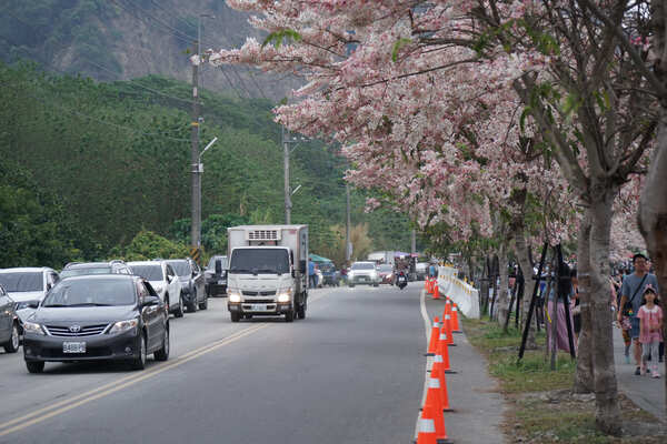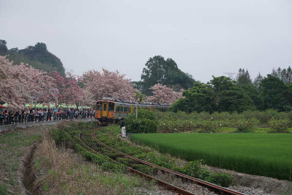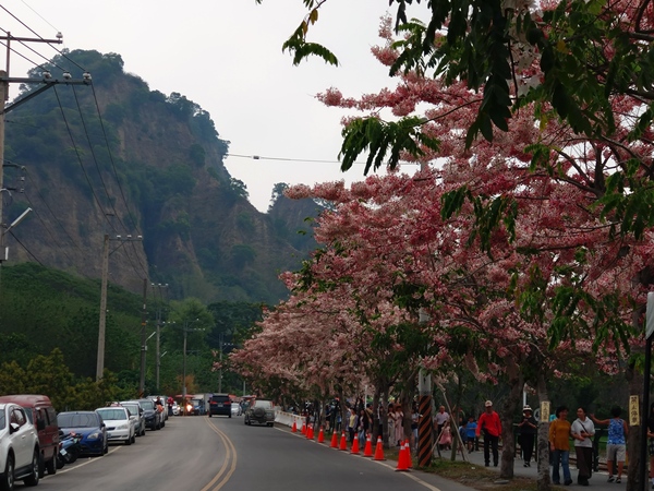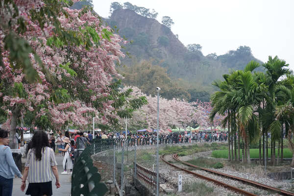 花旗木(Cassia bakeriana)原產於泰國、越南、緬甸,以及印度等熱帶國家,又有「泰國櫻花」和「桃花陣雨樹」的別稱;花期介於三月至五月之間,由於花朵顏色貌似櫻花,在氣候相對溫暖的臺灣中南部成為熱門景觀樹種。適逢清明連假,參山國家風景區特別在「二水花旗木鐵道」舉辦活動,街頭藝人演奏的樂聲中,遊客聚集在鐵道旁守候著,只為了捕捉下午5點35分左右,集集線列車穿越花旗木下的剎那。