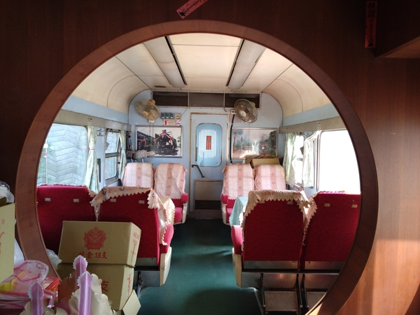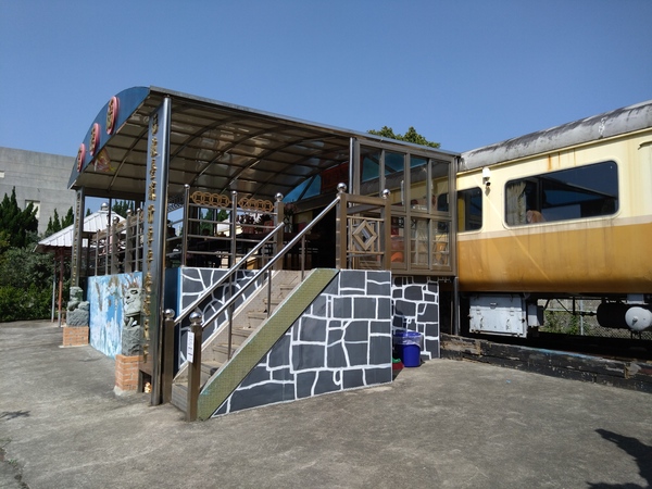 相對於富岡基地門禁森嚴,大門口自強號車廂土地公廟平易近人不少。民國108年(2019)落成的廟宇,運用臺鐵EMU100型電聯車──別稱「英國貴婦」的第一代電氣化自橋號車廂改造而成。香爐、供桌,以及神位一應俱全,車廂左右兩端的休息室,布置成早期座椅對坐的形式。將「鐵道」與「伯公廟」兩樣在地文化元素巧妙地結合,自強號車廂土地公廟全臺絕無僅有。