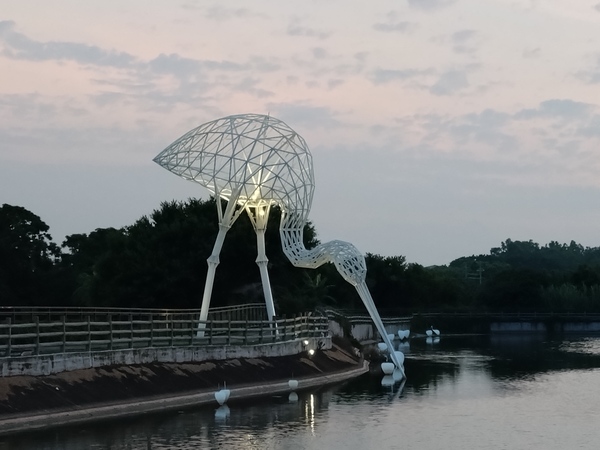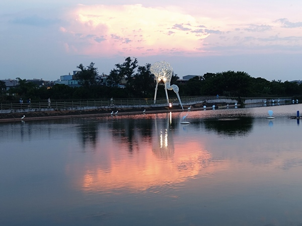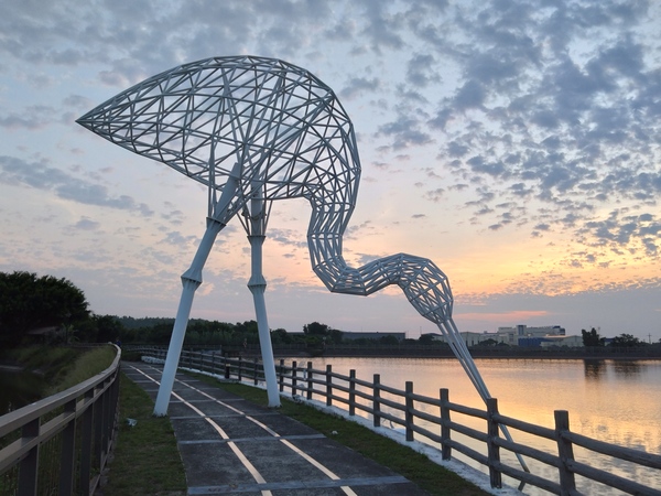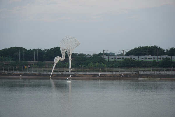 往來列車行駛過三連陂岸,更在天色漸沉之際嶄露光亮。鐵道、鷺鷥,以及晚霞,譜成一幅色彩斑斕的童趣。