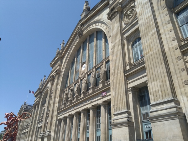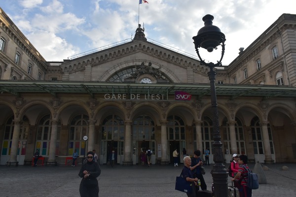 離開巴黎時,昨天與我們相談甚歡的櫃檯人員並沒有出現,這樣也好,偶然遇見,不需要冒著掉眼淚的風險。同樣坐落在第十區的巴黎東站距離巴黎北站僅僅500公尺之遙;啟用於1849年,巴黎東站在1854年之前被稱為「史特拉斯堡碼頭」(Embarcadère de Strasbourg),由巴黎-史特拉斯堡鐵路公司(Compagnie du Chemin de Fer de Paris à Strasbourg)出資,建築師François Duquesnay設計。