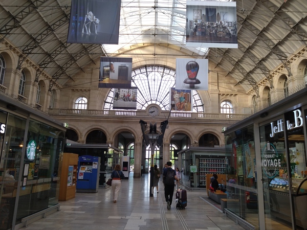 從旅館順著Rue des Deux Gares(雙站街)步行,一座電梯銜接巴黎東站西翼的阿爾薩斯大廳(Hall Alsace)。與羅浮宮附近的沙特萊廣場(Place du Châtelet)遙遙相望,巴黎東站同樣是新古典主義建築的典範,山牆式屋頂裝飾倫巴第條紋圖案;車站西翼時鐘兩側圖案象徵萊茵河與塞納河,中央雕像代表史特拉斯堡,東翼擴建於1931年,時鐘兩側圖案象徵馬恩河(Marne)和默茲河(Meuse),中央雕像代表凡爾登(Verdun),內部為裝飾藝術風格的聖馬丁大廳(Hall Saint-Martin)。
