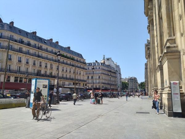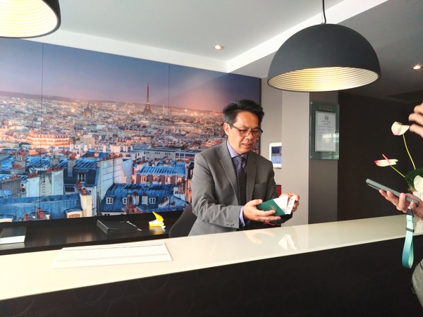 Appia La Fayette Hotel大廳配置飲水機,櫃檯服務人員親切有禮,以略帶法國腔調的流利英語為我們解說住宿環境,「Too short. Too short.」(太短了,太短了!)聽到我們此行只打算在巴黎住上一宿,他大嘆可惜,希望我們下次拜訪巴黎,一定要停留至少一個星期以上。提到最喜歡的巴黎街道,他特別推薦羅浮宮與協和廣場(Place de la Concorde)之間的里沃利街(Rue de Rivoli),尤其欣賞街上的杜勒麗花園(Jardin des Tuileries)。