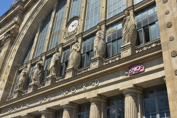 巴黎北站月臺上方的屋頂造型宏偉,運用玻璃和鋼鐵搭建而成,更別出心裁的是面朝南方的車站立面,當時委託藝術家創作23尊女性雕像,代表巴黎北站啟用初期23個列車目的地:山牆正中央象徵巴黎,左右八尊代表倫敦、布魯塞爾、阿姆斯特丹、法蘭克福、柏林、科隆、維也納,以及華沙八座歐洲城市,至於玻璃窗前的其他14尊雕像,則是里爾(Lille)、加來(Calais)、敦克爾克(Dunkirk)、亞眠(Amiens)等法國國內14座城鎮的化身。