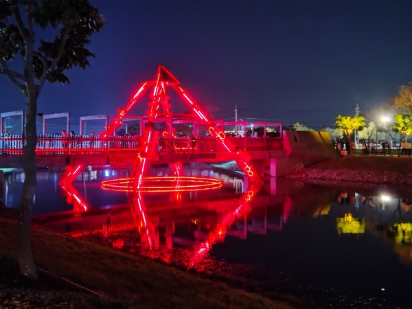 從橋南老街出發,《A1拾光計畫》運用成串的燈籠留住天上的月光與星光,《A2電訊幻獸:羽蛇神》顯現中美洲古文明常見的祭司守護者:主宰晨星的羽蛇神,象徵死亡與新生;度過曲橋,曲橋南端的《A5凝》描繪出舊時海岸線的位置,水面上的《A4花映》透過重疊與漸變展現月津港的榮華,較遠處的《A6又一個月圓》靈感取自青斑蝶,代表一年一度燈會的約期。