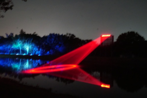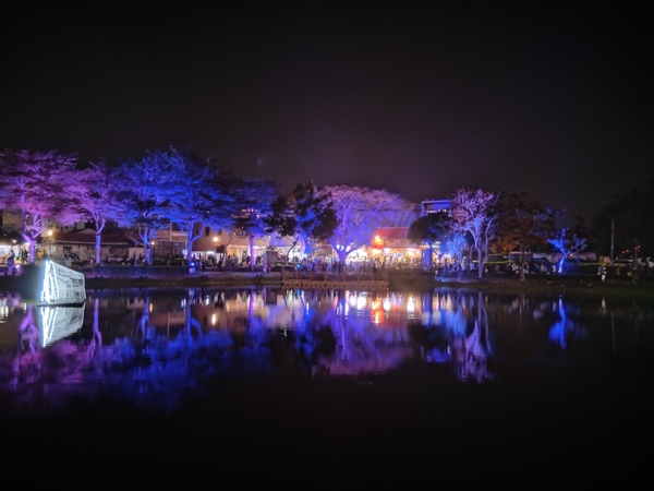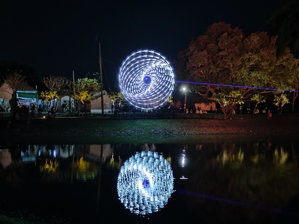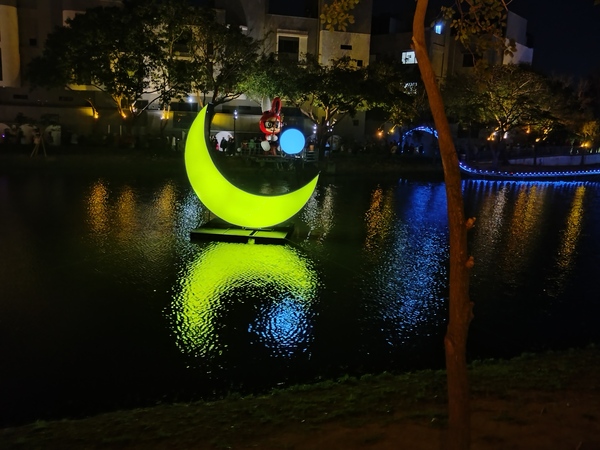 眾人驚呼與讚嘆聲中,《A21光輪月》變幻的光影映照河港的興衰,和距離不遠的《A23浸漬的()線》同樣令人印象深刻:善用光線與水折射、反射的物理特性,顯現出有如標點符號「(」和「)」的圖案,藉此讓遊人思考人與自然的關係;被賦予「古月照今塵」的寓意,古月橋車水馬龍,附近《A24風催葉》象徵時光流轉,世間萬物變幻的恆常。