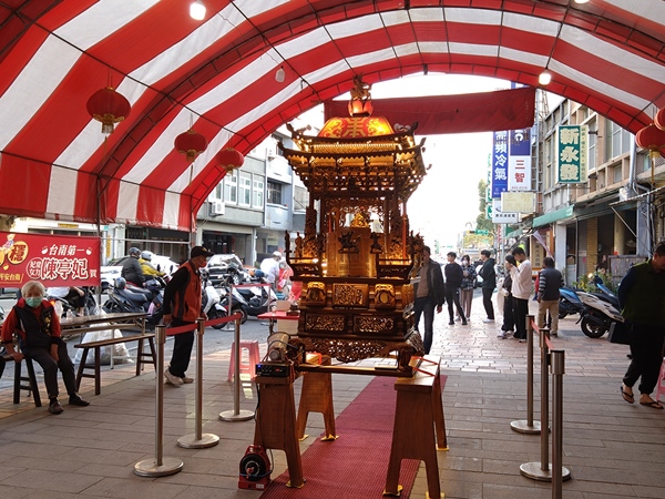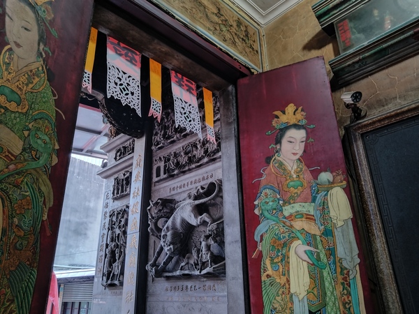 「護庇宮竟然收藏了這幅作品!」藉由「台南旅遊網」官方網站的介紹,熱心的志工陪伴著我一一尋找媽祖廟裡的藝品珍藏,未曾注意到「托金獅奪帥」的她,發現畫作的當下也驚喜萬分。