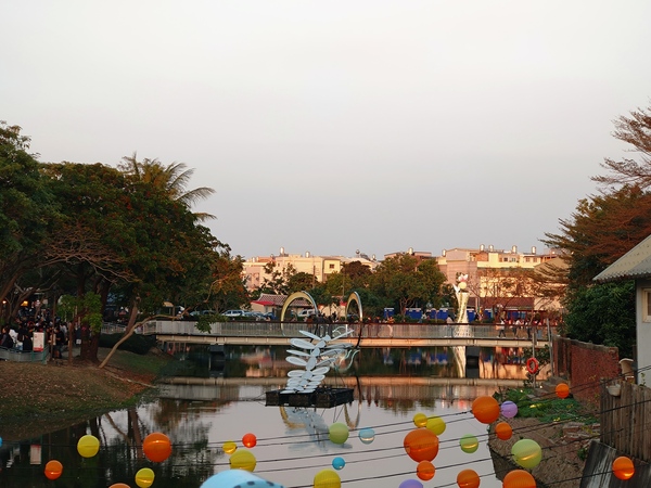 黃昏時分,月津港親水公園遊人如織,河港北岸一座色彩明亮的房屋,與水中倒影勾勒出一彎皎潔的新月;河港南岸,舊稱「藏興街」的橋南老街人山人海、商賈雲集,是臺灣少數保存的清朝官道之一。坐在橫跨月津港的古橋上,杏仁茶滋味香醇,搭配酥脆油條一齊享用,靜靜等候夜幕降臨。