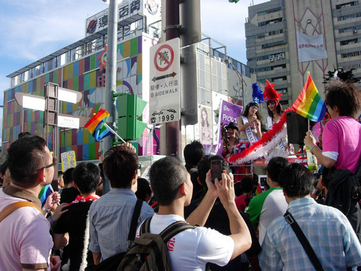 而更棒的是,出了餐廳,走在衡陽路上,居然撞見一年一度的台灣同志大遊行,遠遠看見一組花枝招展的人群時,令我頓時high翻了,趕忙拿出相機往前擠,想拍下這股熱鬧勁。