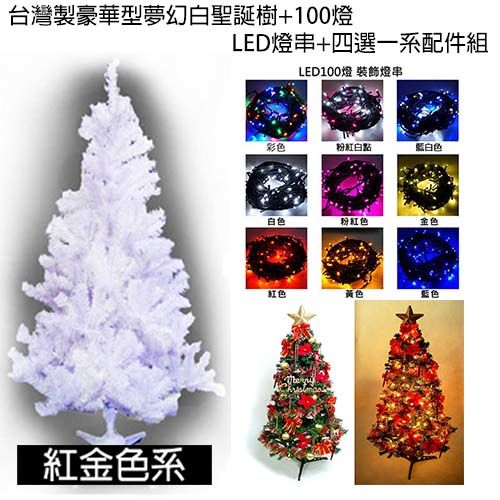 台製8呎豪華版夢幻白色聖誕樹+紅金色系飾品組+100燈LED燈4串 ![]() |