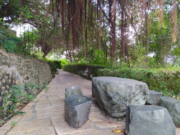 幽林深處 碧草芳蘭 日暮天長 波光向晚 淺塘垂楊風絮亂 柳下花前一笑塵寰 朱樓凝盼 浮雲聚散 煙浪漫漫 無限關山