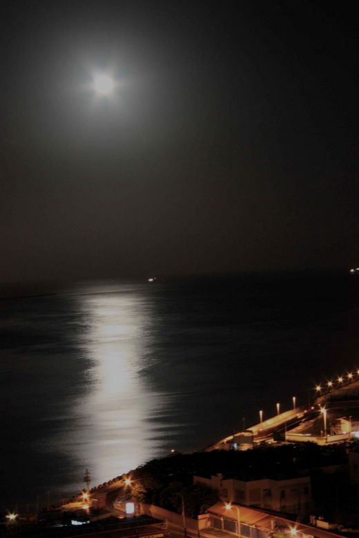 九月3日晚上七點多,我看到淡水河口剛升起的滿月。月光,實在太亮了,不但水面閃動著夕陽般的燐燐波光,雲朵也彷彿還留在白天。當時,只覺得美極了!回家才想起,這是中元節的滿月啊!當晚,我趕稿直到隔天凌晨三點多,本來已累得只想大睡一場,但經過客廳窗口,卻看到淡水河出海口即將下沈的滿月,竟然與剛升起時一樣的超級亮。半天內,兩度被月光吸引,怎能不拍照留念呢
