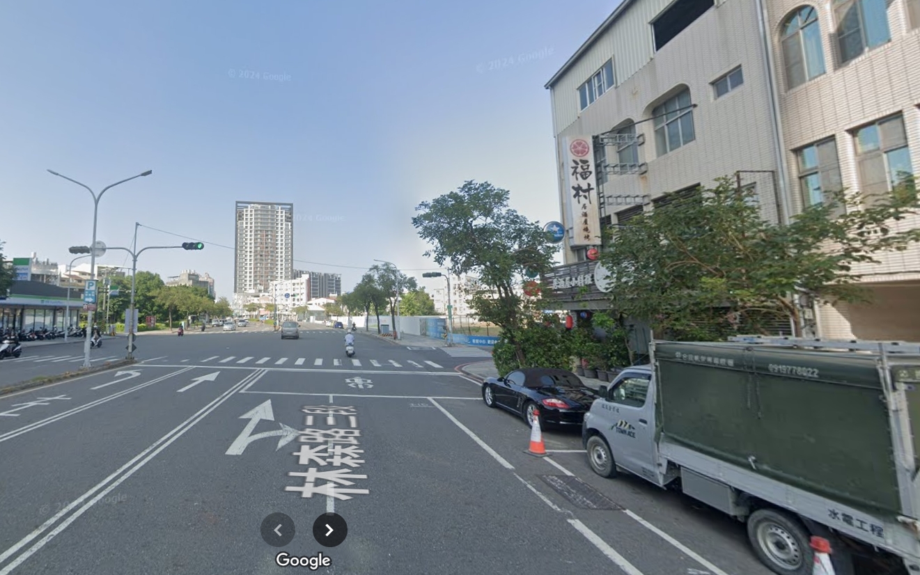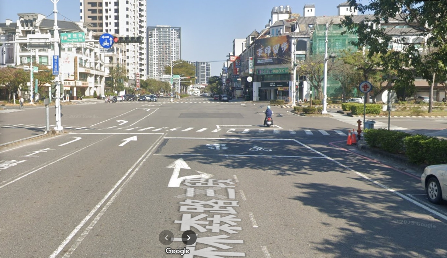 圖:林森路中間車道劃設同時有直行與右轉合併指向標線,讓用路人認為「標線允許我右轉」。