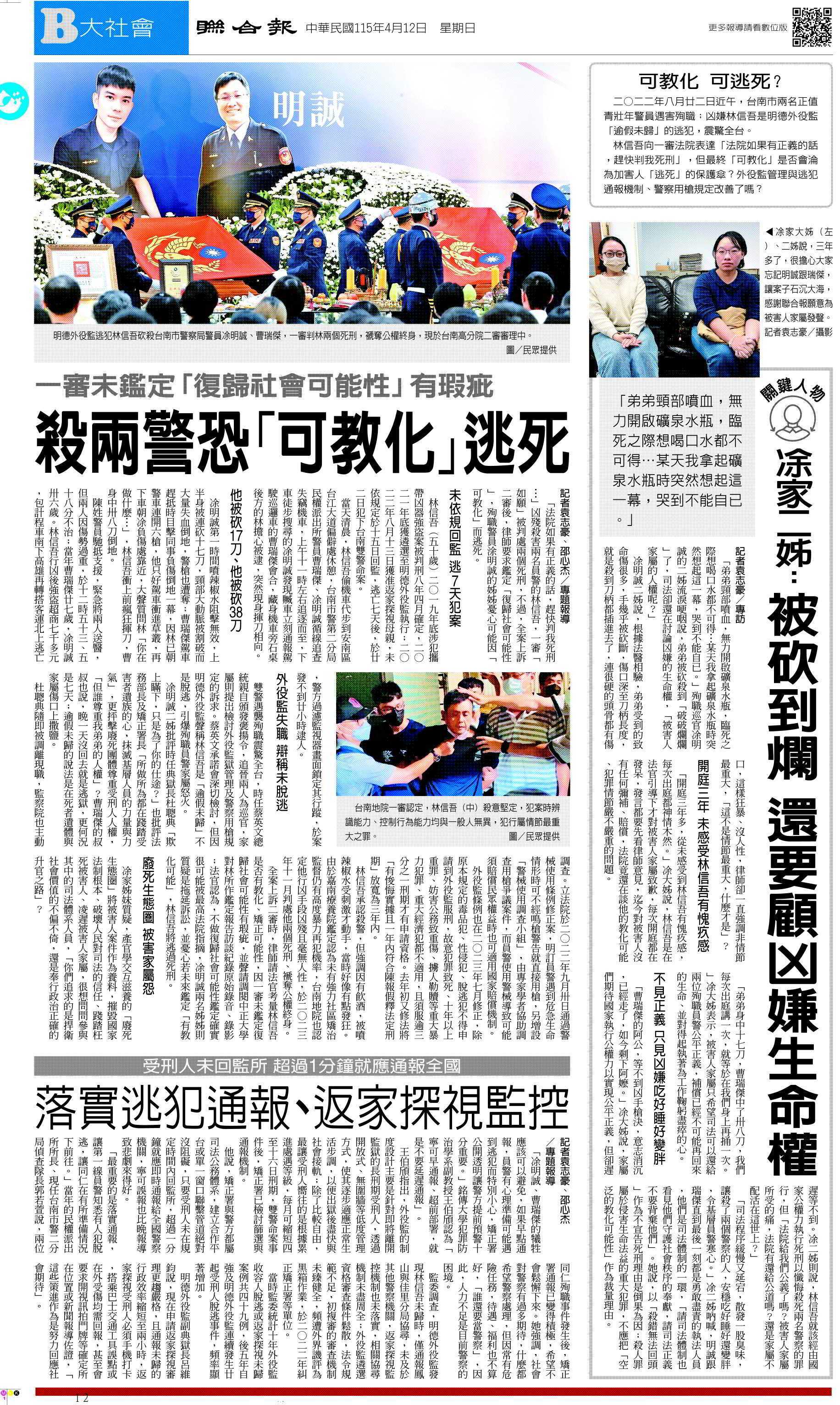 延伸閱讀:雙警命案始末/外役監逃犯殘忍殺雙警 被害者家屬憂心凶手二審恐逃死