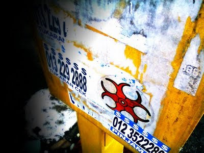 慢慢走出圖騰界定的疆域,虛構中的故事戛然而止。驀然想起MSN的一個角落出現的一個熟口熟臉的圖騰,我倏地失去聯想的意趣。又是一個不知何時,那圖騰已滲透了虛擬,到我的電腦裏。依稀記得我用指尖騰挪著滑鼠,輕輕地點在圖騰上,看著我的火狐瀏覽器跳出了一個新頁面。裏頭堆滿了圖騰、照片和字母,媒介語是馬來語,竟是一個社交網站。原來那些圖騰不是街頭藝術家的創作,只是隨處亂貼的廣告貼紙。或許廣告和藝術,就是強制接受的一門藝術。察覺與否,欣賞與否,它們都是存在的,我們被強制接受。