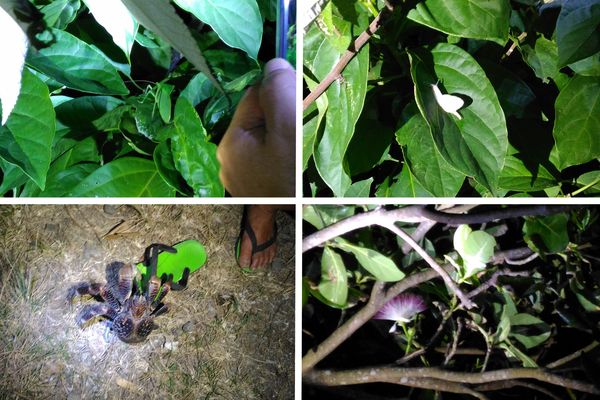 衣方便,雖我只是短短2天一夜的時間,但我帶了四套衣服,有長有短,晚上當地人說海風大,没蚊子,別信他,如果你的血型是A型或O型(聴說是蚊子最愛的食物。 我真的納悶,為何西洋人的吸血鬼不是蚊子的化身而是蝙蝴?),千萬要備有防蚊液,蚊子很多,這裡也提供夜間生態導覽,有興趣的話,可以請民宿的主人幫忙預約。 我們晚上出去吃餐,蚊子一堆,有人被咬到表皮腫很大。餐後約8:00是夜導的活動,主要是找貓頭鷹(小型的),我們很幸運,不只聴到也看到了貓頭鷹,聴導覽員說,這個季節是結婚期,所以特容找,但蘭嶼的貓頭鷹可是每年換情人的哦! 不只是貓頭鷹,我們也看到許多夜間的昆蟲,像是白蝸牛、螽斯、竹節蟲、寄居蟹、棋盤脚開花等等。