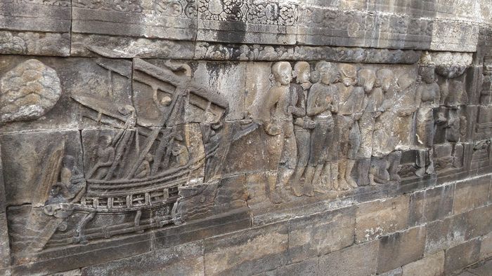 在這一圈的壁刻中,有個非常特別的圖形,那就是對舫船的雕刻,每個舫船都刻的不一樣,但可以看得出來,其航海技術已到了某種高級的層度,對航海有興趣的人,可能會耗費很多時間,研究這些不同的舫船。