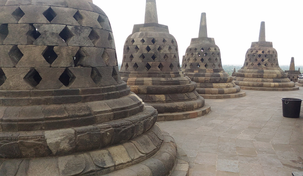 Borobudur Temple (婆羅廟) 現已是聯合國指定的世界遺產之一,該廟建於8或9世紀,位於爪哇島的中間部份的山上,相傳是被火山爆發所掩埋,後在荷蘭殖民期間所發現。 我們是由雅加達搭飛機到日惹,後搭車前往約1小時,該區的票價分為日出、白天、日落+夜間,票價各不同,只有白天票參觀較便宜,但白天票要留待觀日落時,守衛人員會清場,所以想撿便宜的話,也得看看你是否能幸運躲過守門員的清場動作。