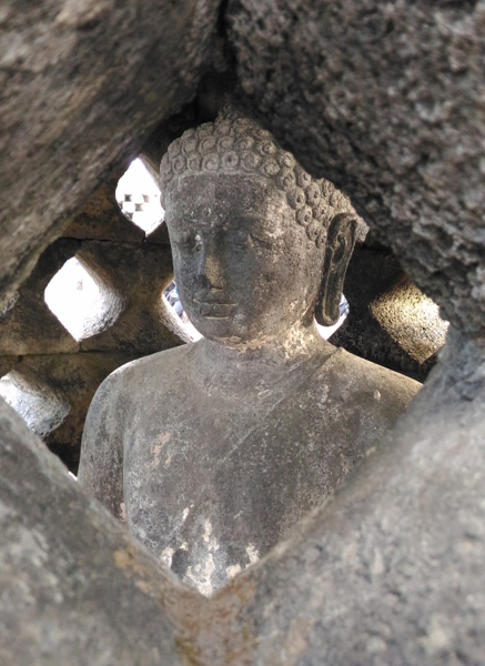 婆羅廟東西南北的佛像,各有不同的手勢,大部份的佛頭或手都不見了,據說是被盜走拿去賣了,聴到這裡,決得與中國敦煌的佛像,命運很相似,像這些佛頭和佛手或佛像,在歐美的各大博物館裡,都可以看得到,歐美人說,是他們替亞洲人保管,但等到亞洲人有能力保管古物時,這些博物館會歸還寶物嗎? 我深感懷疑!