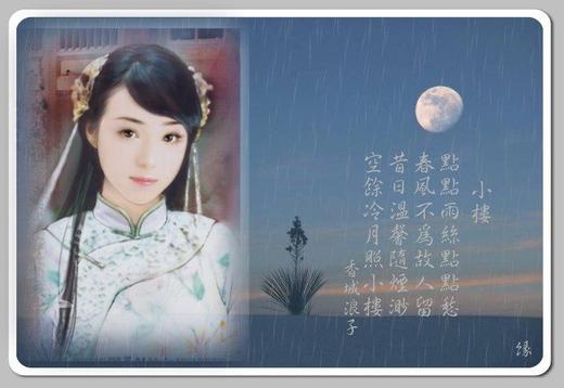 點點雨絲點點愁,春風不為故人留。昔日溫馨隨煙渺,空餘冷月照小樓。
