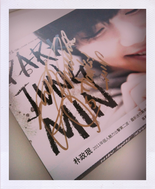 旁邊三個圍著他的工作人員然後笑了...老闆還是在簽CD,