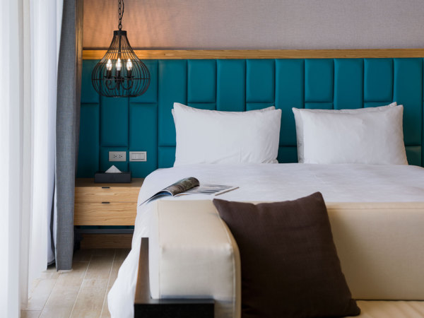 每個房型皆有不同的主題樂趣;以藍色海洋導入客房的設計概念,搭配現代簡約的傢飾佈置,溫潤木色柔合在格柵天花與木地板,展現出無拘無束的自在氛圍。莊園風格房型,則以白色浪漫作為調性,運用布幔、簾幕交織視覺、老船板以白色烤漆作為造型天花,吧檯上的雲朵燈飾,象徵南洋風情的慵懶意境;蜜月套房大膽強烈的視覺色彩猶如自由奔放的青春,以開放式浴缸的全新體驗,將海邊沙灘的景觀視野,融入幸福甜蜜的生活。