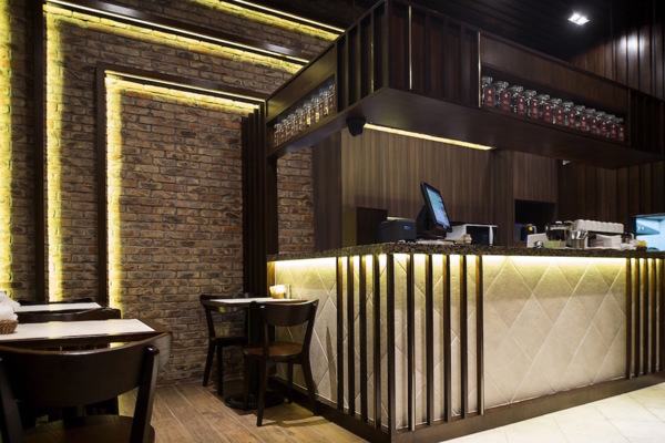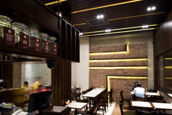 搭配家具、裝飾、照明上的選擇配置,營造出自在、休閒的茶餐廳氛圍,主要材質為木頭和紅磚,透過兩者在紋路及色彩上的差異,帶出拼合後的美感與和諧,激盪出非凡的火花,並為整體空間帶來嶄新的面貌。