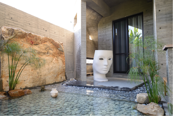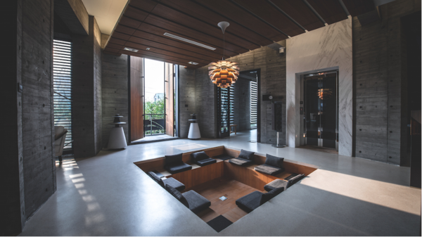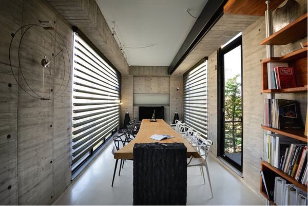 在一個晴朗的早晨,設計盒子DESIGN BOX驅車前往台南專訪石蓋設計總監溫少強。下了交流道,沿著路緩緩向前,遠遠便看見石蓋建築事務所。清水模獨有的灰色沈穩氣質與粗獷感,加上高大的外牆使它在滿是工業區的地方脫穎而出。隨著愈靠近大門,眼前一片鬱鬱蔥蔥的植栽與門內傳來的流水聲,無形釋放出舒適、自在的氛圍。單單站在門外,已讓人迫不及待想再更多認識這裡的人、事、物。