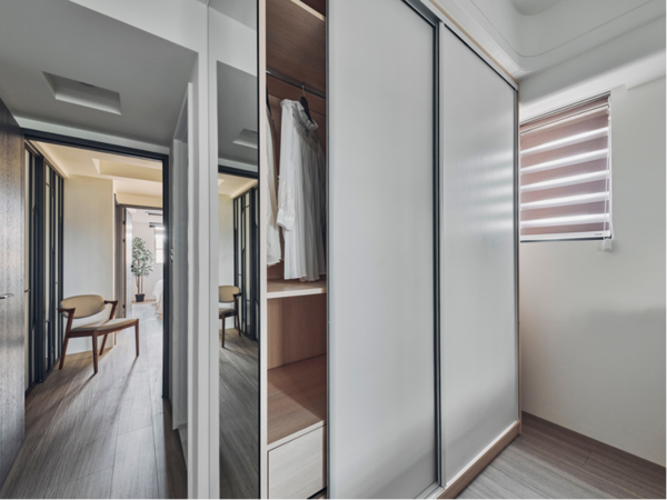 本案住宅除了已配置的機能建置,也添設了全熱交換、全屋除濕等裝備。並將防疫概念導入空間規劃當中,期許創造出健康防疫的居所環境。鑑於此案為退休養老宅,因此長輩生活的便利性亦是主要考量,不僅安裝攝像機於主要空間,讓子女可遠端觀看家中動靜;並結合智能設備,讓父母僅需透過語音指令即可聲控智慧家電,使父母居住生活更加便利,子女亦能安心。