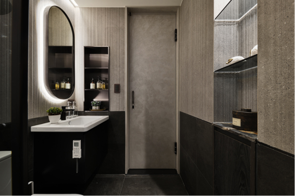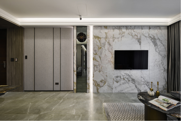 猶如寬廣自然的室外景緻,山川的壯麗歷歷在目,環顧四周──所見所觸皆蘊含俐落典雅。拓穎設計翁采縈以自身對石材的多年專業作刻刀,一刀一筆刻出藏於本案《璞石之流》中的細膩。牆體的花紋大理石彰顯形同流水般的動態感,金屬物件點綴其中營造內斂的奢華質感,設計師巧妙運用同色系的色彩配置串連空間的和諧,再以燈光搭配木質為其冷冽注入一股溫潤沈穩之流。透過與生俱來的流動感將生命力灌注於空間每一隅,踏入其中便可輕而易舉找到由質地塑造之美學,本案也以這股層次風華奪得了芬蘭ADA大獎金獎殊榮。
