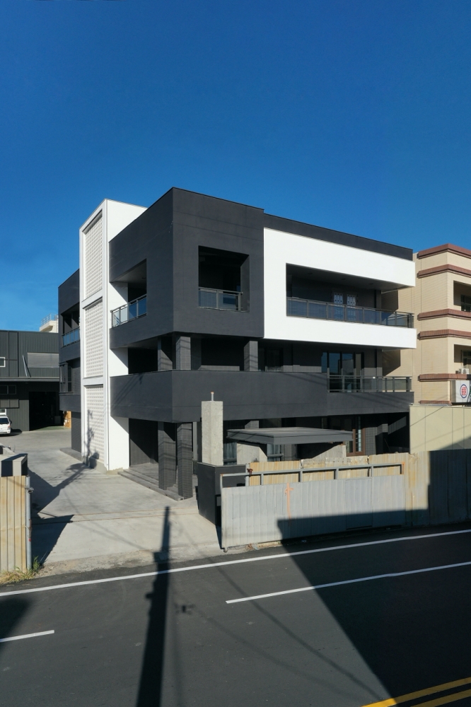 望向建築立面,外牆選用黑與白色陶砂骨材進行大面噴塗,並設計細膩的分割線條增添主體細膩度,再輔以黑灰色丁掛磚穿插其中,增添視覺層次感。除此之外,團隊運用專業工法將原建物外凸的弧形樓梯拆除後,打造整面白色花格磚牆,並將花格磚均分為三、垂直組構於四層樓高的建物中,使原先昏暗的室內空間引入大量光線。不僅創造通透且開闊的格局,亦讓建築立面更多變、有趣。其中,考量傳統空心磚無結構行為而存在的結構安全疑慮,因此特地選用由專業工匠手工窯燒製成的白色花格磚,並將花格磚四周採特殊工法進行車溝,讓鋼筋得以貫穿、搭接整座花格磚牆並延伸至結構樑、柱中。賦予挑高的牆體擁有獨立的結構行為,增添整體的穩固性及安全性,徹底排除傳統花格磚耐用度不高及載重過重的問題。