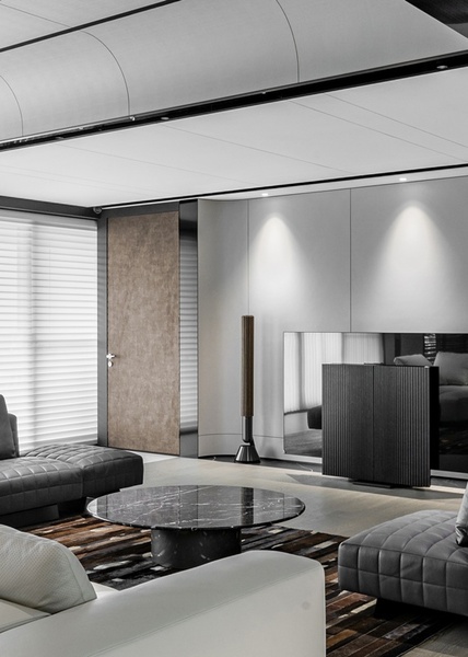 隱身於城市靜處,這座住宅承載著對質感與生活節奏的細膩追求。空間不僅是居所,更是內在秩序與生活美學的延伸。設計回應對「沉靜奢雅」與「生活儀式感」的深層渴望,透過「質材對話 × 光影沉澱 × 流動結構」為主軸,將石、金屬、皮革與木質等異材質融會貫通,形塑出一處內斂穩重而層次豐富的當代居所。整體格局以雙軸動線鋪陳空間敘事,一主一副交錯延展,如無聲畫筆揮灑於白紙之上,巧妙串連起起居、會客、私密與通透等多重場域,完成場景轉換間的詩意流動與靜謐共生。