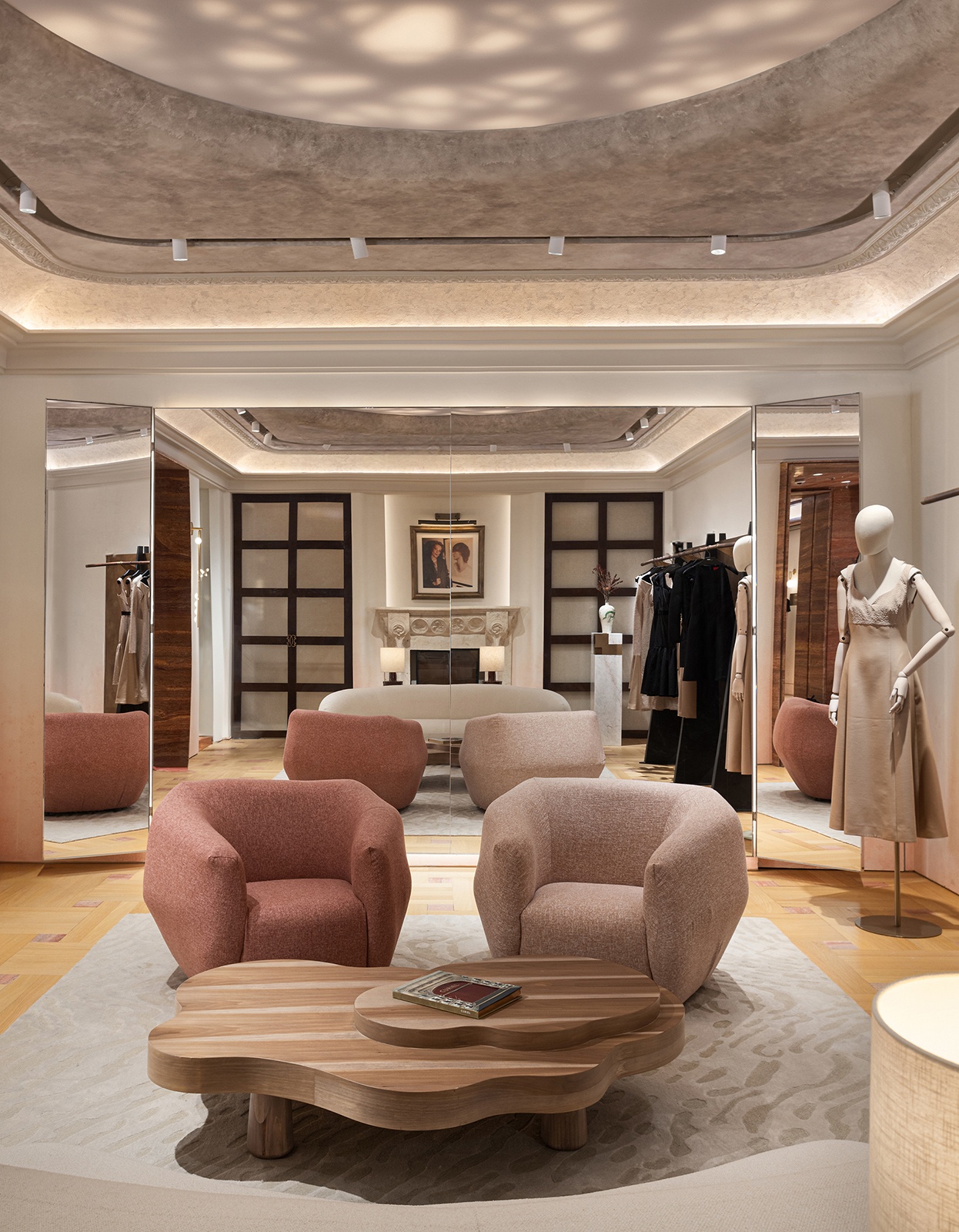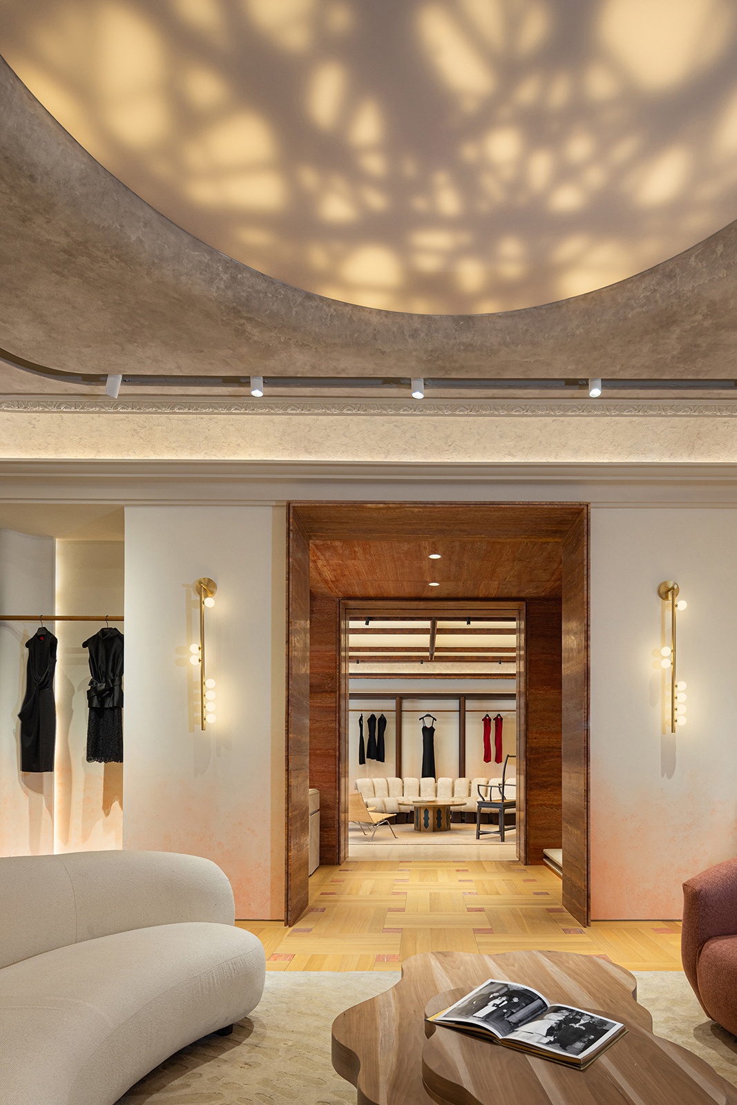 如今,這份承襲百年的藝術精神,在重慶 CURIEL CASA 旗艦店獲得嶄新詮釋。 設計團隊以空間語彙延續品牌精神脈絡,將品牌核心中的「女性優雅力量」哲學, 與重慶山城文脈進行解構重組。這座旗艦店成為一個結合歌劇敘事、東方工藝與現 代美學的沉浸式場域,使品牌對藝術的熱忱與對工藝的堅持,在空間中煥發全新生 命力並建立在地情感連結。