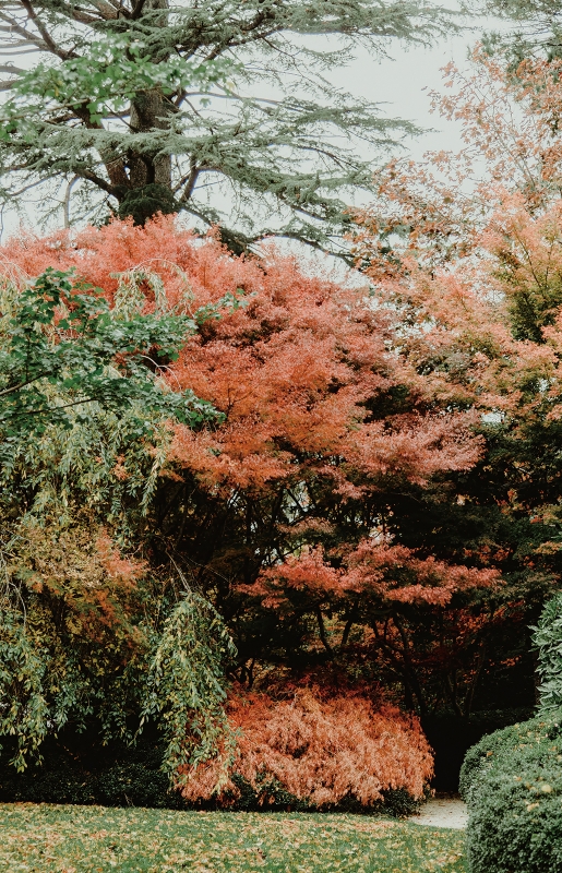 佔地 24 英畝(約 9.7 公頃)的莊園,珍藏自 19 世紀 80 年代起引入的多樣珍稀植栽。園區在雪梨皇 家植物園設計師 Charles Moore 親自指導下擘劃,移 植自英國、日本、喜馬拉雅與美洲的異域植被,造 就生態紛呈。園中尤以楓樹、杜鵑、山茶花及古老 樹蕨著稱,被譽為澳洲頂尖的涼爽氣候花園。正門 前矗立的兩棵喜馬拉雅雪松,樹齡逾 135 載,為莊 園腹地內最富傳奇色彩的標誌性景觀之一。