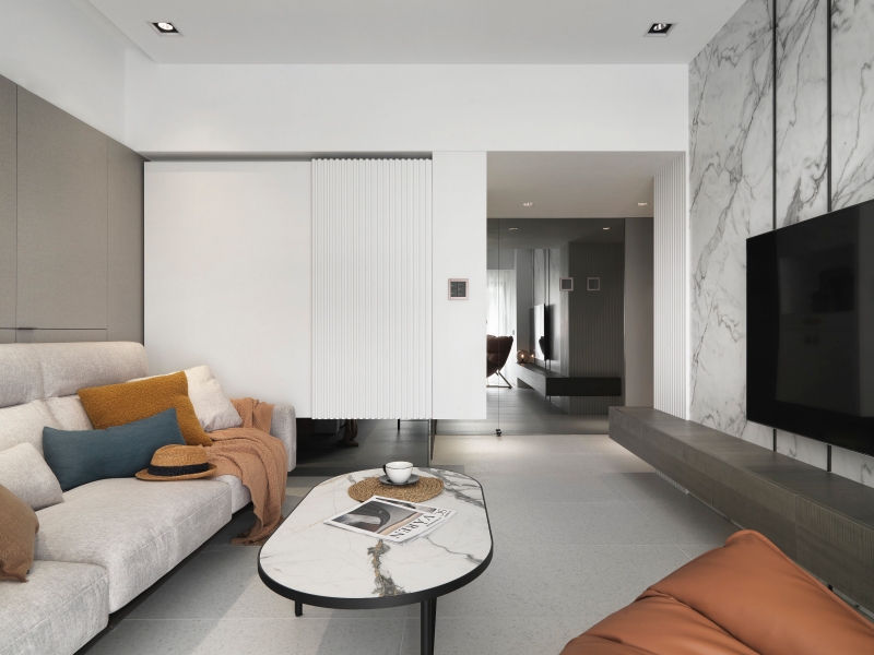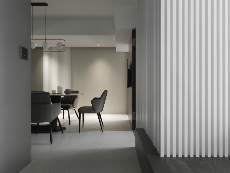 本案為老屋翻新住宅,設計以「色彩作為情緒場域」為核心命題,跳脫單一風格框架,轉而從色彩心理與材質觸感切入,重塑居住者與空間之間的感知關係。全案以低飽和莫蘭迪灰階為基底,透過玻璃、金屬與石材的層層鋪陳,重新梳理老屋破碎的動線與採光條件,並藉由視線軸線與端景節點的安排,使空間在理性秩序中保有情緒溫度,顯著改善原先封閉、昏暗的居住狀態。