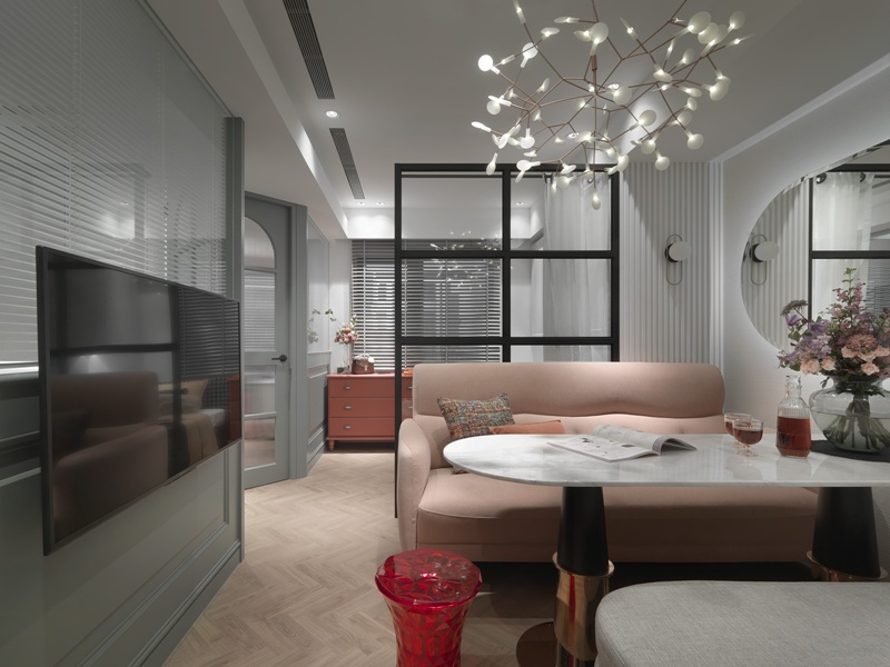 本案為13坪住宅,以「在城市方盒中,植入一顆巴黎的靈魂」為設計起點,打破都會住宅制式的扁平框架。透過引入1920年代法式裝飾藝術與現代摩登語彙,以高飽和色彩的精準配置與細膩材質堆疊,在有限坪數中建立兼具情緒張力與居住深度的生活場域。