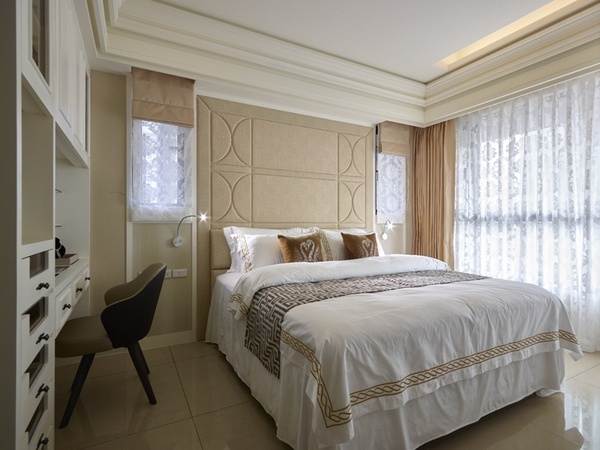 - 柔光主臥:繃布床頭搭配雙側窗引入柔和自然光,使休憩空間明亮而不失靜謐。
