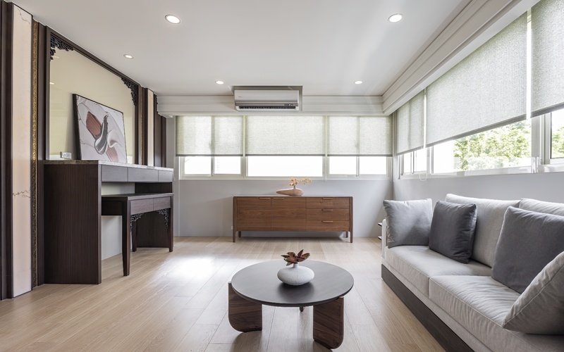 - 被動節能:中性色彩與窗簾調光,協助室內保溫降耗。