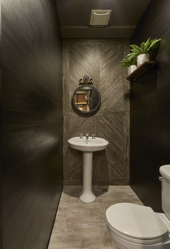 - 氣派大雅風:水泥地坪色冷簡約,交錯紅磚與木質牆面,獨具高級感。